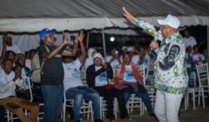 À Makwengue, quartier général de campagne, la foule est là, nombreuse. Chants, applaudissements, banderoles. L’ambiance est chaude, mais disciplinée. Les candidats aux locales et aux législatives sont présentés à l’assemblée. Bien que déjà connus des habitants, déjà actifs sur le terrain.