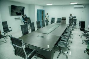 L’intérieur du bâtiment est une vitrine du talent artistique gabonais, avec une décoration riche en œuvres d’art, dont la pièce maîtresse est une création récente de l’artiste-peintre Georges Mbouroux. Ce choix met en lumière l’engagement du ministère à promouvoir la culture locale tout en offrant un espace de travail inspirant et dynamique.