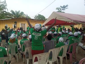 Le président du PR a ensuite parlé de l’entrepreneuriat. De la nécessité de l’autonomisation des jeunes et des femmes par le financement des micro projets. Lesquels doivent aboutir à une pleine autonomie des patriotes du PR, sur le plan économique et donner aux personnes concernées la réelle maîtrise de leurs ressources et de leur destin.