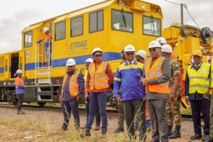 Dès les premières heures de la matinée, le Ministre d’État a été accueilli par les cheminots à la SETRAG. Après une présentation des missions et des enjeux de l’entreprise, la délégation s’est rendue au point kilométrique 8 de la voie ferrée. Sur place, le Ministre a pu constater l’occupation anarchique des abords de la voie, représentant un danger pour les populations riveraines.