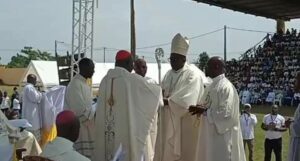 La cérémonie s’est déroulée au Stade Alexandre Samba de Makokou en présence, des membres du collège épiscopal catholique gabonais, de nombreux prêtres, religieux, religieuses, du ministre d’Etat, ministre de l’Énergie et des Ressources hydrauliques, Alain Claude Bilie bi Nze, des Ministres, Michael Moussa, Ministre des Affaires Étrangères, Léon Bounda Balonzi, Ministre des Infrastructures, Raphaël Ngazouze, Ministre de la Formation Professionnelle, de Mme Prisca Koho Nlend, ancien Ministre, des personnalités politiques, administratives, coutumières du pays et de milliers de fidèles laïcs venus de toute la province.