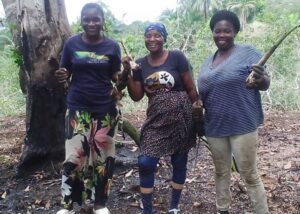 Le matin, quand le soleil caresse doucement les feuilles de la mangrove, Corine Maroundou Moussavou Nziengui se tient sur le terrain familial, bêche à la main. Elle plonge la terre sombre, sent son odeur humide, et plante arachides et bananes avec une patience qui semble suspendre le temps. Autour d’elle, les jeunes citronniers dressent leurs premières feuilles comme des mains tendues vers le ciel, et la mangrove, autrefois silencieuse, murmure sous la brise.