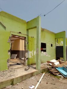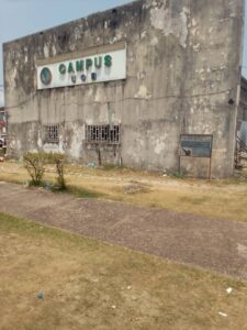 Du côté de »l’interro », la véranda qui est le lieu de repos et de travail des étudiants, c’est le cybercafé » moov » en face de l’infirmerie, le cybercafé juste derrière celui là en allant vers » la maison de l’étudiant » et les épiceries qui s’y trouvaient ont été détruits.