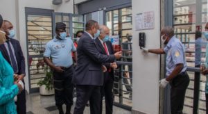 Le ministre de l’Economie et des Finances, Jean Marie Ogandaga a visité hier,le 24 avril 2020, les établissements financiers pour s’assurer du bon déroulement du calendrier du retrait des rémunérations  des fonctionnaires, des magistrats et de la main d’oeuvre non permanente après les forces de sécurité et de défense et du personnel de santé.