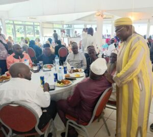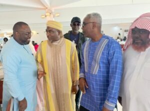 Après s’étre rendu dans les premières heures de la matinée, à la grande mosquées de Libreville avec d’autres fidèles afin d’ adresser des prières à Allah, le miséricordieux, pour leur avoir permis d’accomplir le 4e pilier de l’islam, le Chef de la Communauté Musulmane du Gabon, Abdu Razzaq Guy KAMBOGO, était aux côtés des frères musulmans, amis et connaissances pour leur apporter du baume au coeur et partager avec eux ce grand moment de célébration du « Très-Haut » qui permet de renforcer les liens de fraternité et d’amitié au sein d’une même communauté.