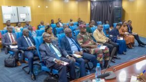 Séance de travail ce mardi 27 février 2024 entre le Ministre de la Culture, de la Jeunesse, des Sports et des Arts, le Dr André Jacques Augand et les hauts cadres de son département notamment les Secrétaires Généraux et adjoints, les Directeurs Généraux et adjoints.